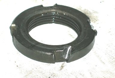 ![]() L'écrou de blocage du pignon de vilo était placé avec sa partie biseautée en appui vers l'intérieur. C'est le sens normal. En le mettant à l'envers on accrocherait les languettes de la rondelle frein en serrant.