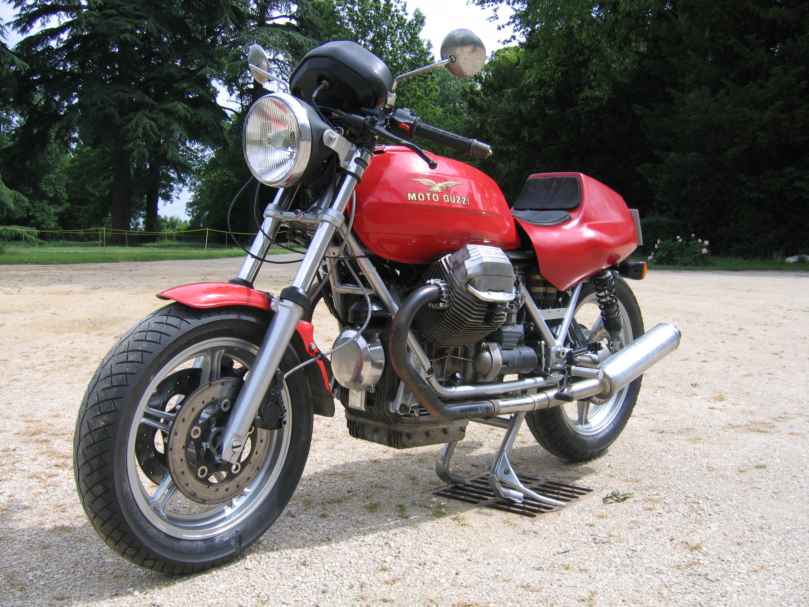 Dépose du vilebrequin d'un gros bloc Guzzi Le Mans 4Pièces BMW à vendre !Pourquoi se prendre la tête à faire ça ?Parce qu'on me l'a conseillé :-), sur la liste guzzitek qui va bien.Plus exactement, sur une bécane de 100 000 bornes, il faut déposer le vilebrequin pour nettoyer l'épurateur centrifuge. La MotoIl s'agit d'une Le Mans 1000 de 87, roue de 16' à l'avant, 3ème main, 100ooo km théoriques (mais le compteur a cassé à 64ooo). Embrayage refait, mais le reste de la mécanique est d'origine; esthétiquement, le précédent proprio avait commencé à la "caféraceriser" avec les commandes reculées fait maison, des pots de 900SS, un cul de selle de gsxr...La bécane était initialement vendue pour pièces, mais en fait tout à fait roulante, bien que sans frein avant.![]()